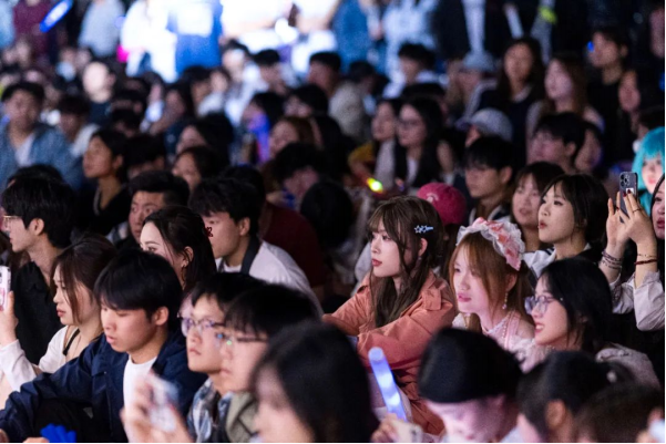 的文创礼品洛小科和洛小文,台下观众欢呼声此起彼伏,情绪高涨,青春的活力在此得到了充分释放。