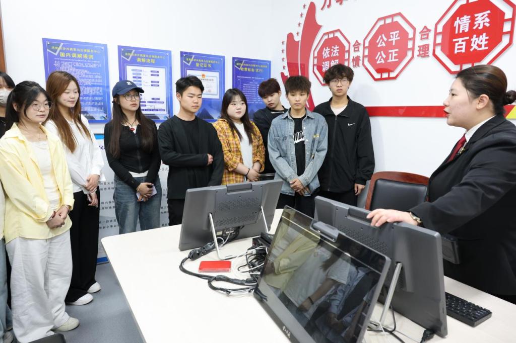 创新构建法治教育"三阶递进"机制,于近日组织2024级师生开展司法场域浸润式教学活动。通过"认知奠基—实践体验—反思内化"的教学闭环,将50余名学生置于西工区人民法院的司法实境中,实现从法律认知到价值认同的全面转化和提升。